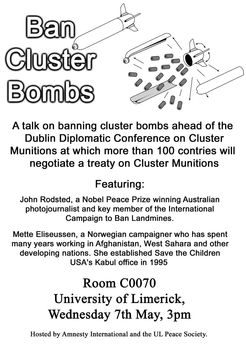 Jump To Comment: 1Poster for Ban Cluster Bombs talk at the University of Limerick Wednesday May 7th.