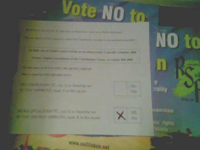 Well in this voting situation neither of the options - a capitalist Europe under the Lisbon Treaty rules or a capitalist Europe under the existing rules - is to my liking.